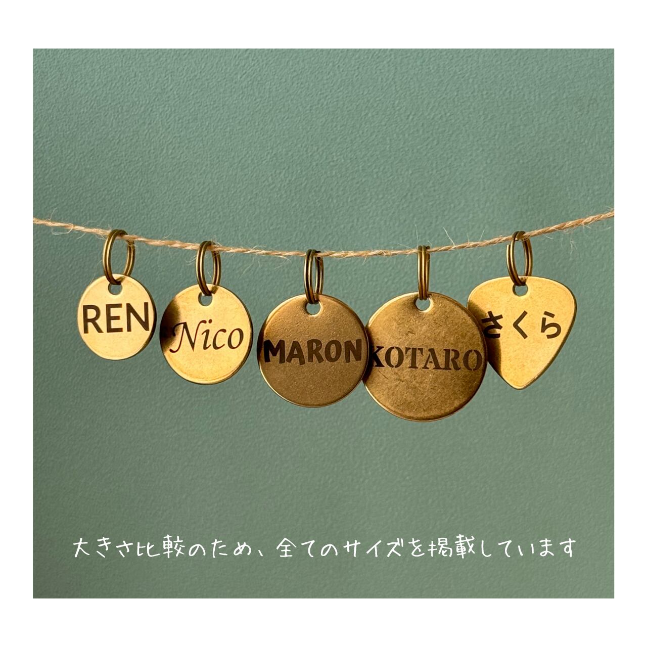 • 丸大(直径24mm): 中型犬に。コーギーやフレブルなど、程よい存在感。